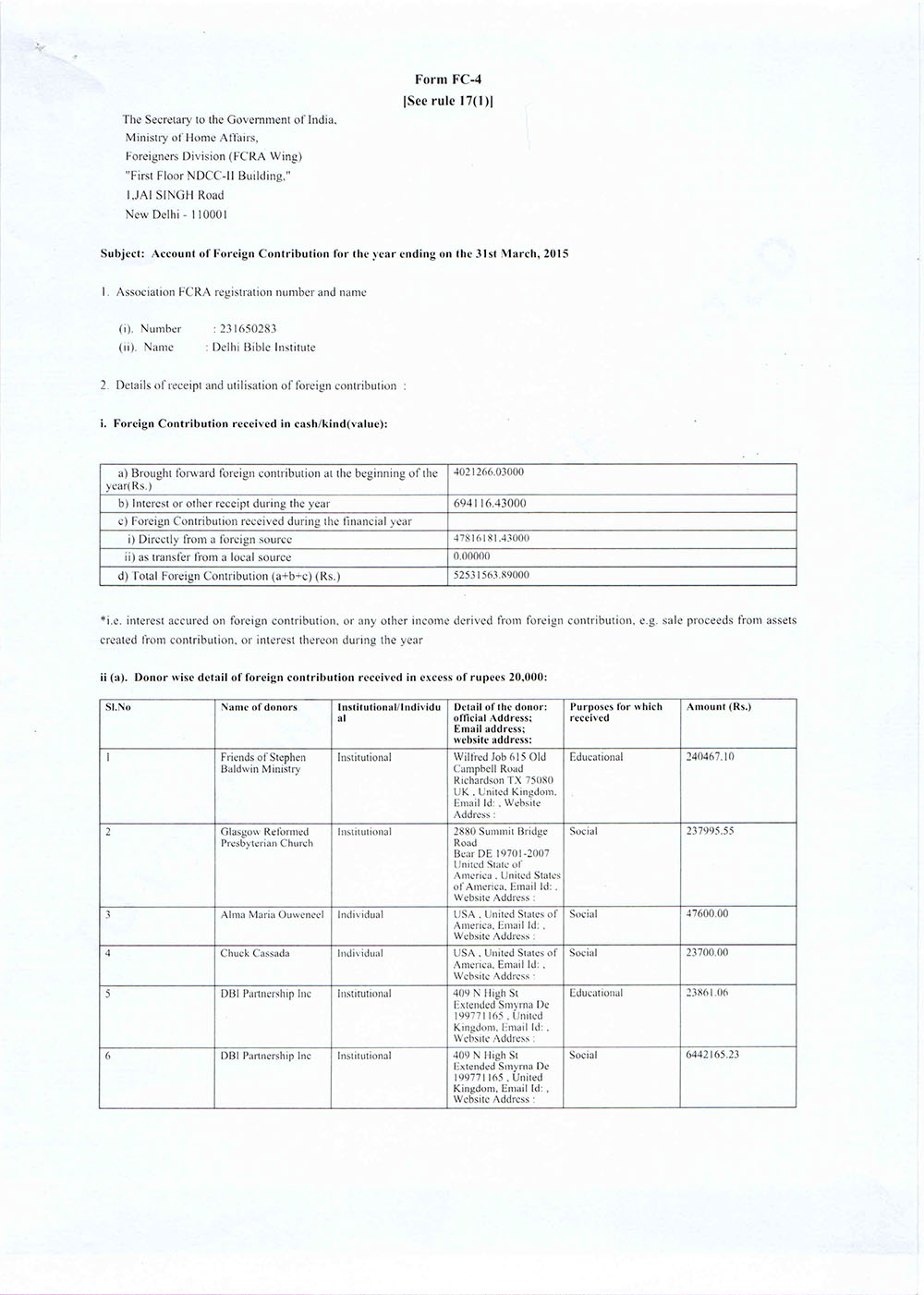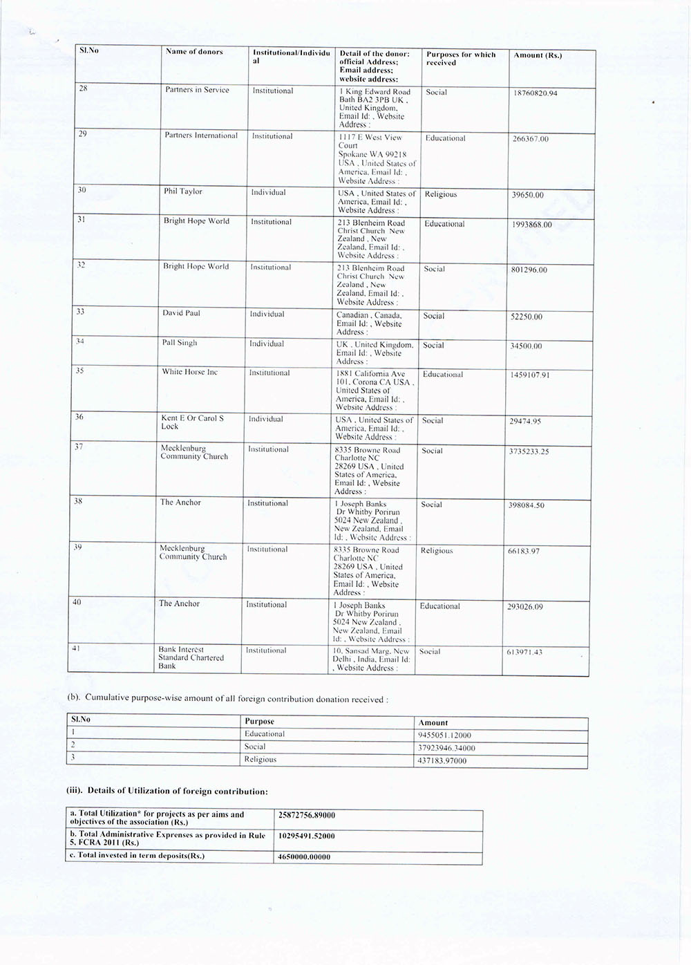 | 49 | 23-10-2015 | World Harvest Mission | 101, West Ave #305, Jenkintown, PA 19046, UK | 4,86,890.45 | Bank |