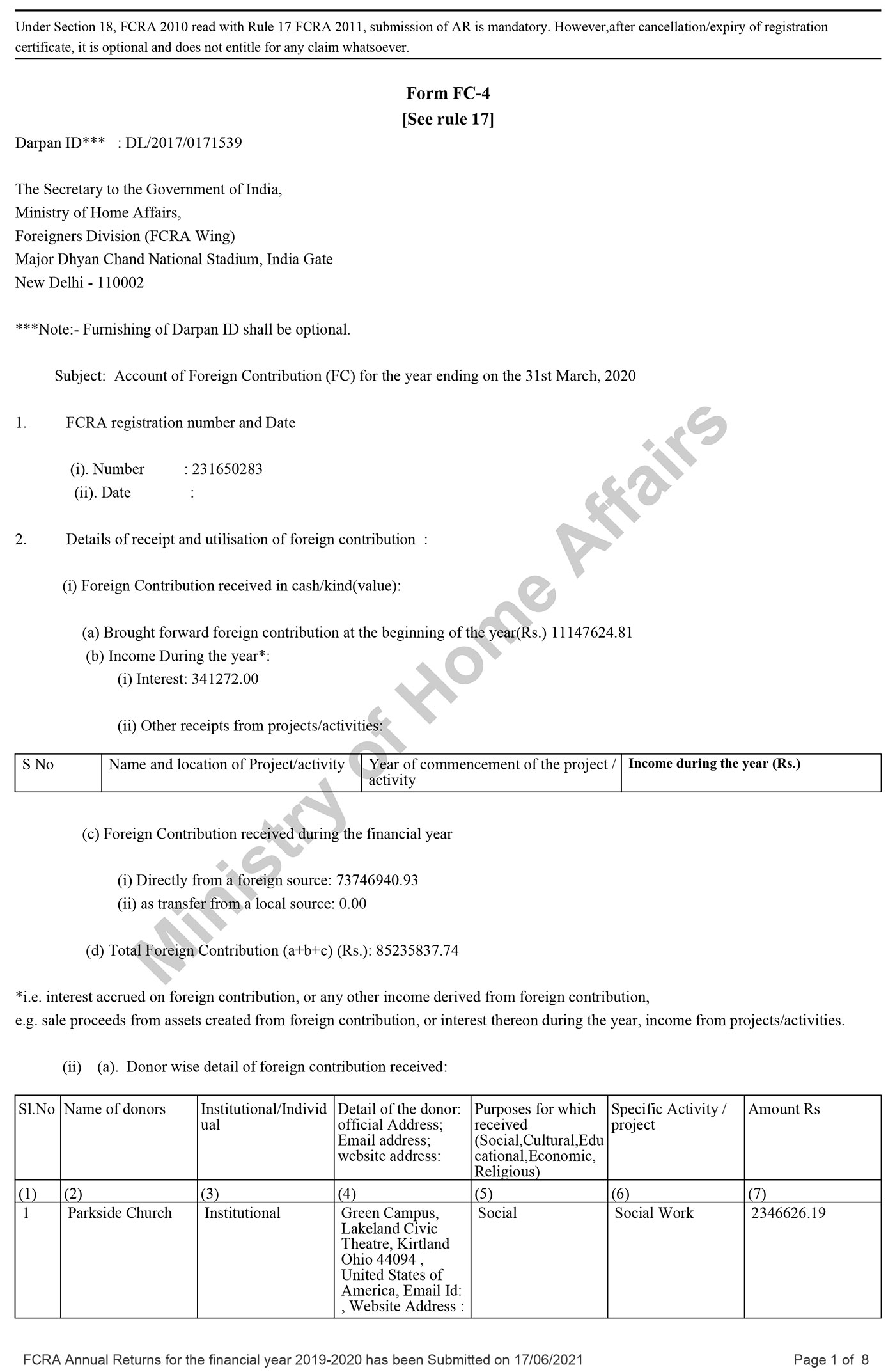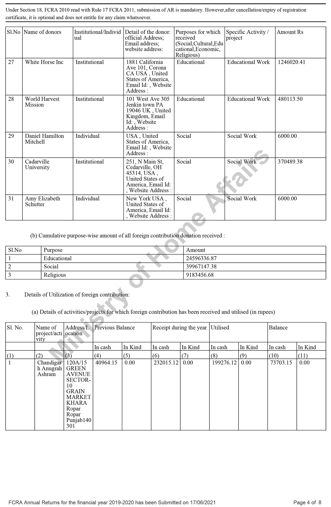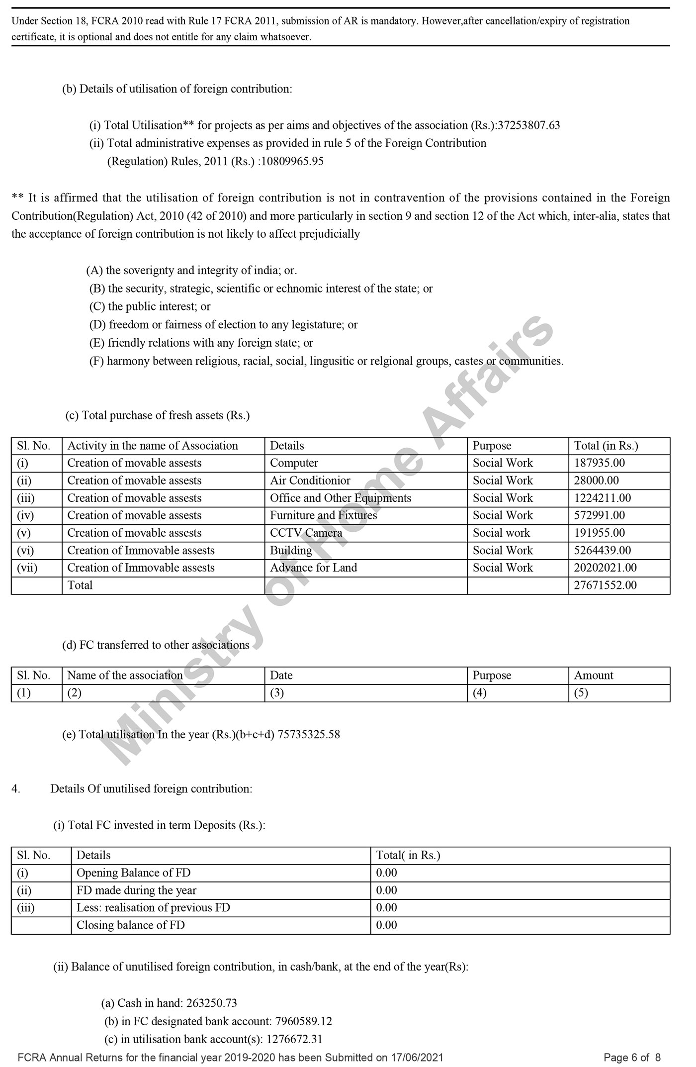 FCRA Statements 2019-20