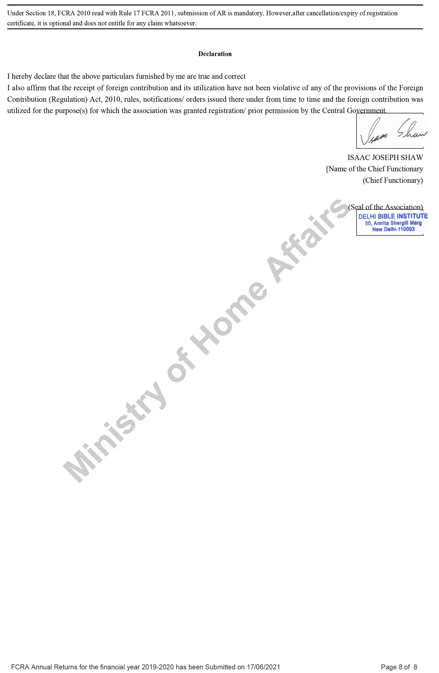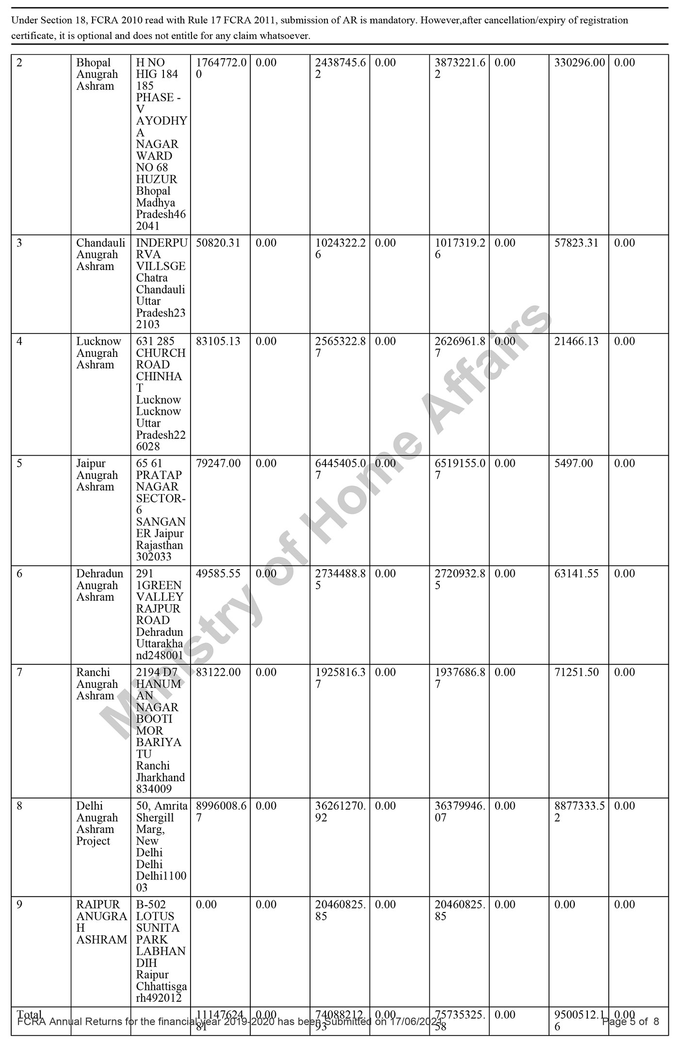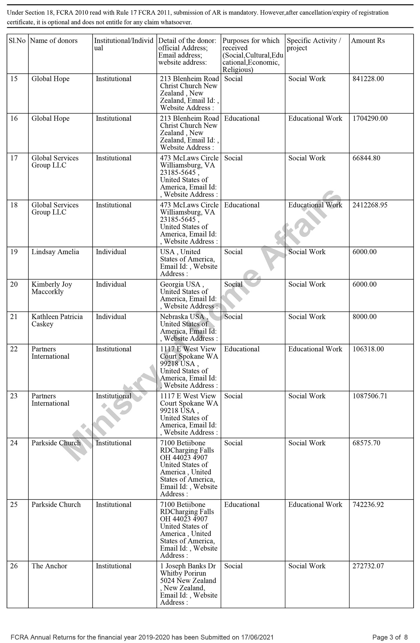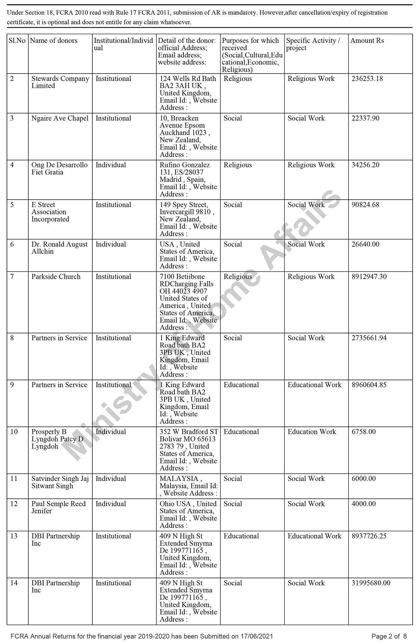 FCRA Statements 2019-20